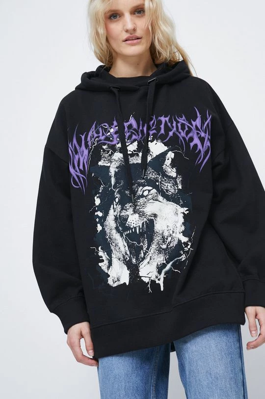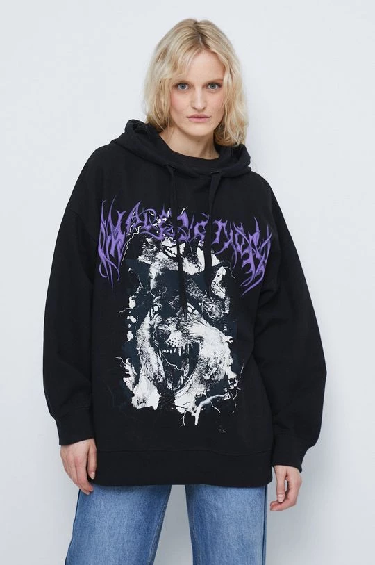 Μπλούζα με κουκούλα από τη συλλογή Medicine. Μοντέλο από πλεκτό με εκτύπωση.