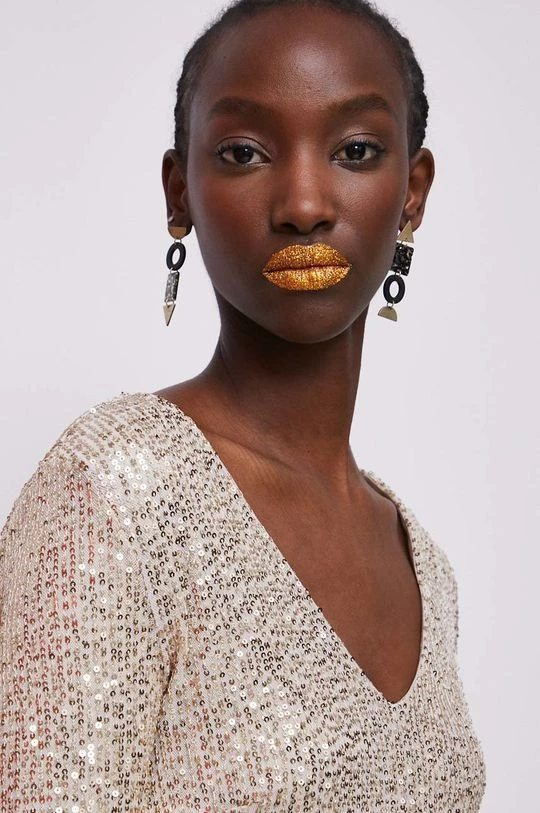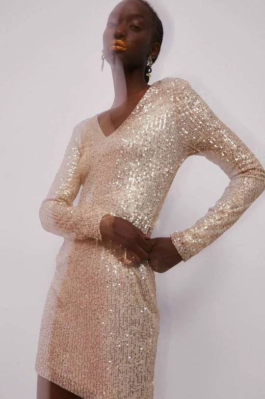 Φόρεμα από τη συλλογή Medicine. Εφαρμοστό μοντέλο από ύφασμα με πούλιες.