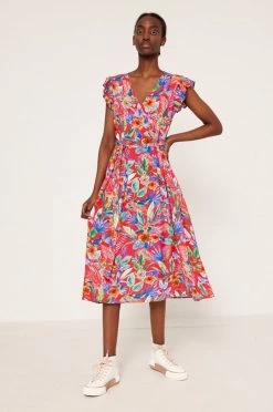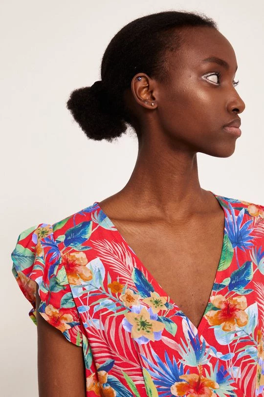 Ελαφρύ φόρεμα από τη συλλογή Medicine. Ανοιχτό μοντέλο από ύφασμα με σχέδια.