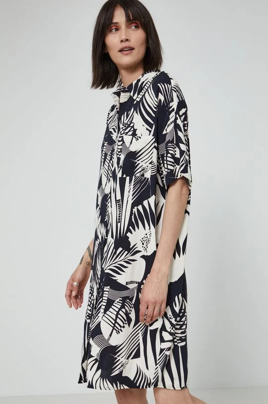 Φόρεμα από τη συλλογή Medicine. Χαλαρό μοντέλο από ύφασμα με σχέδια.