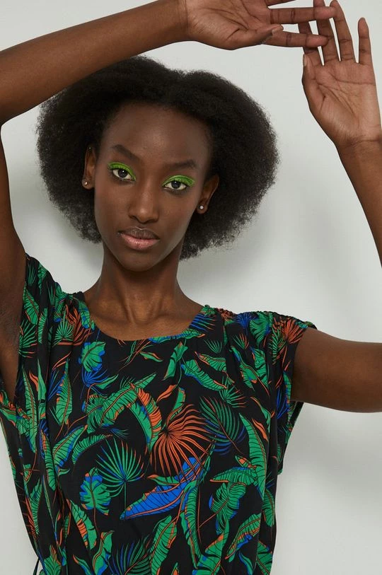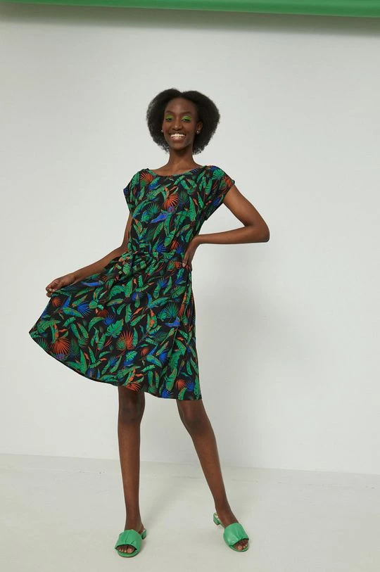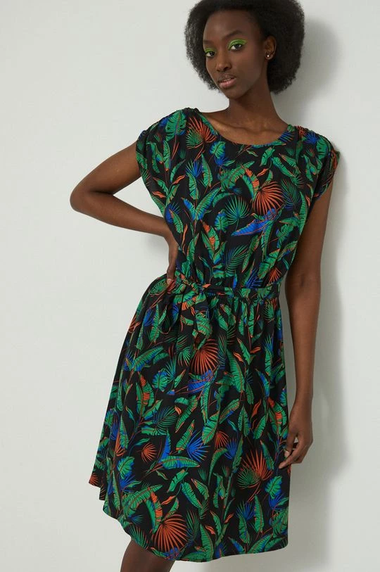 Φόρεμα από τη συλλογή Medicine. Ανοιχτό μοντέλο από ύφασμα με σχέδια.