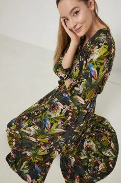 Φόρεμα από τη συλλογή Medicine. Ανοιχτό μοντέλο από ύφασμα με σχέδια.