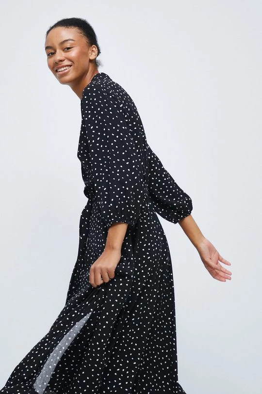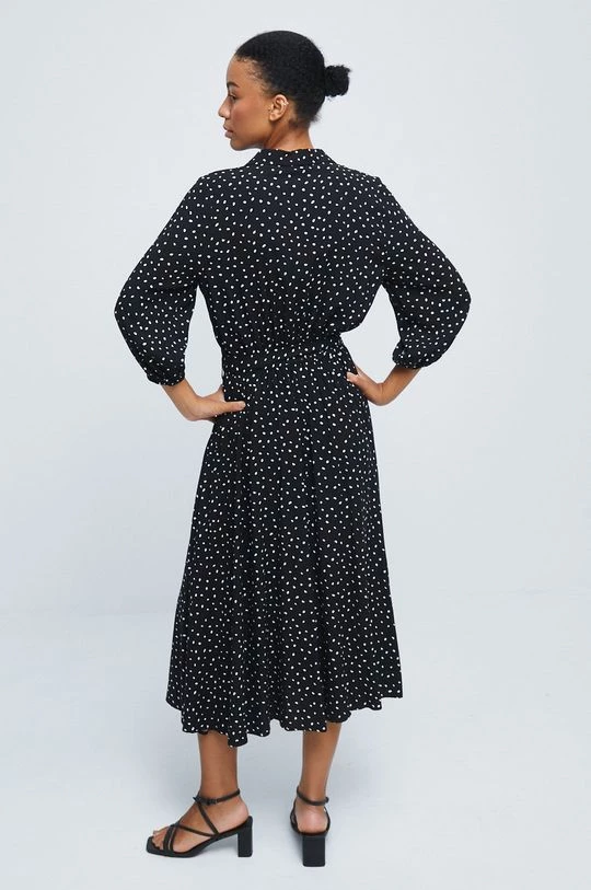 Ελαφρύ φόρεμα από τη συλλογή Medicine. Ανοιχτό μοντέλο από ύφασμα με σχέδια. Ελαφρύ ύφασμα σχεδιασμένο για πιο ζεστές εποχές.