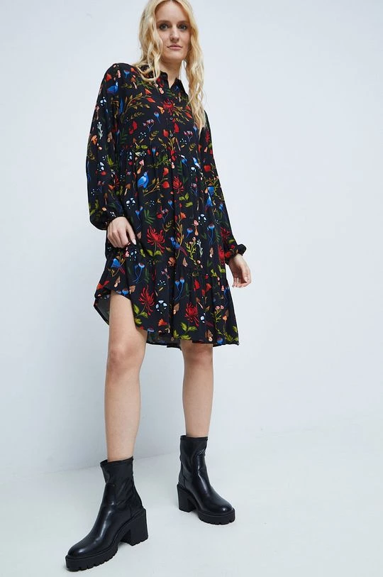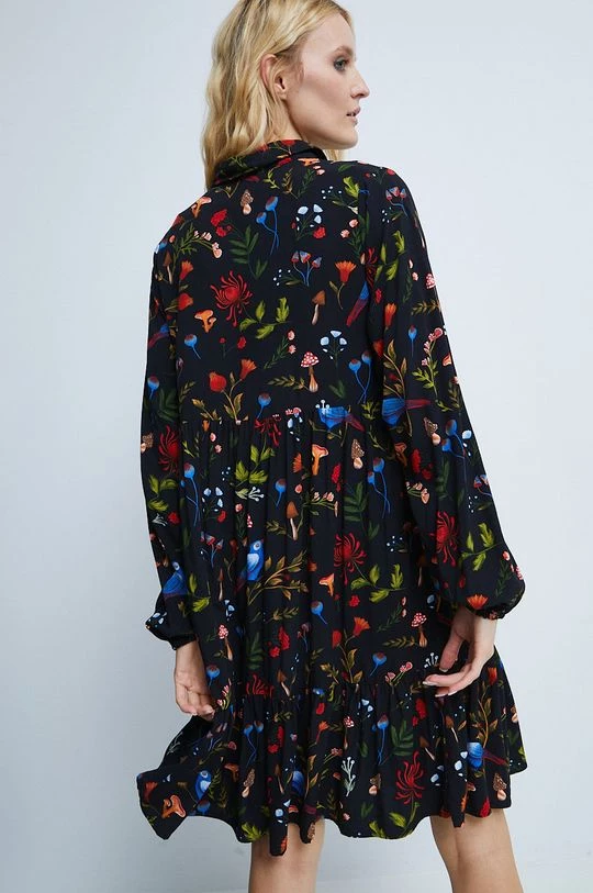 Φόρεμα από τη συλλογή Medicine. Ανοιχτό μοντέλο από ύφασμα με σχέδια.
