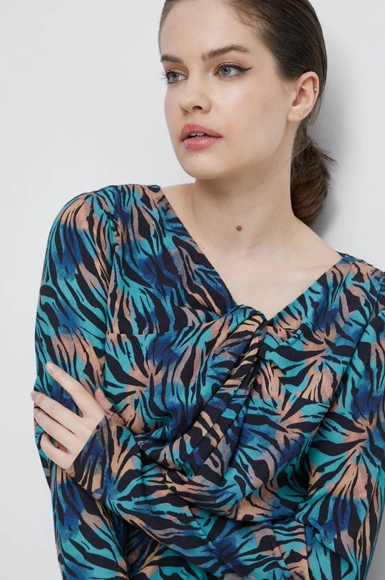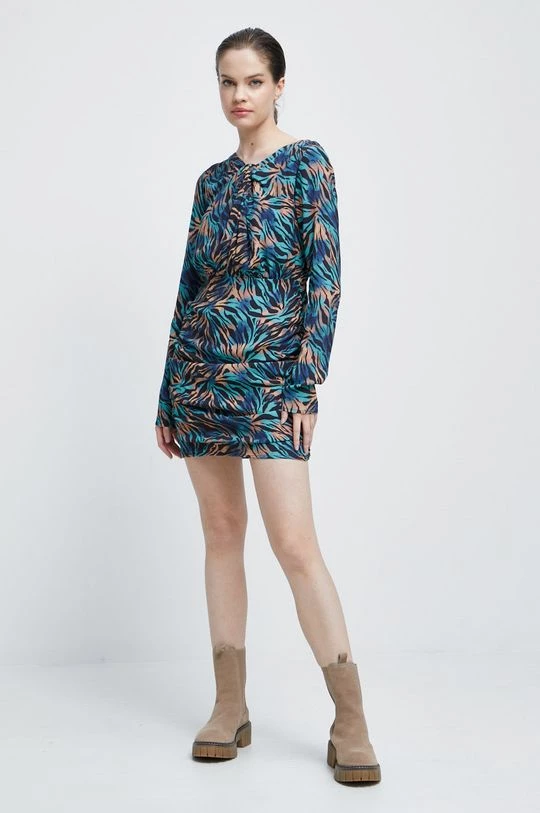 Φόρεμα από τη συλλογή Medicine. Εφαρμοσμένος μοντέλο από ύφασμα με σχέδια.