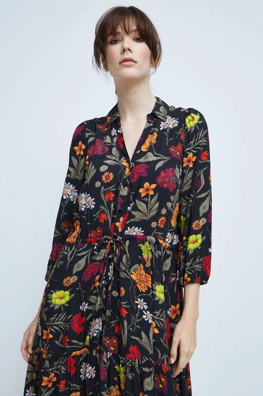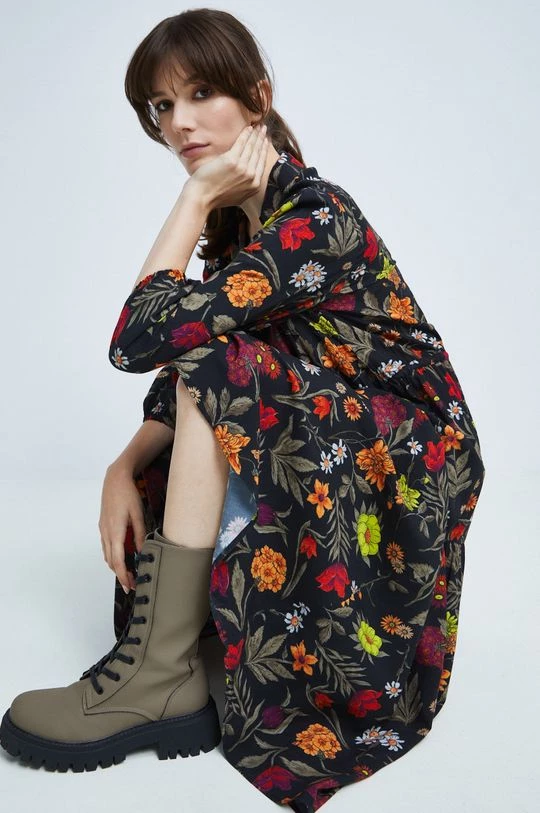 Φόρεμα από τη συλλογή Medicine. Ανοιχτό μοντέλο από ύφασμα με σχέδια.