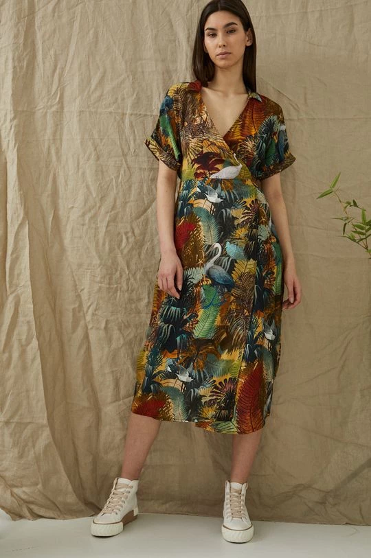 Ελαφρύ φόρεμα από τη συλλογή Medicine. Με μέση μοντέλο από από ύφασμα με σχέδια.