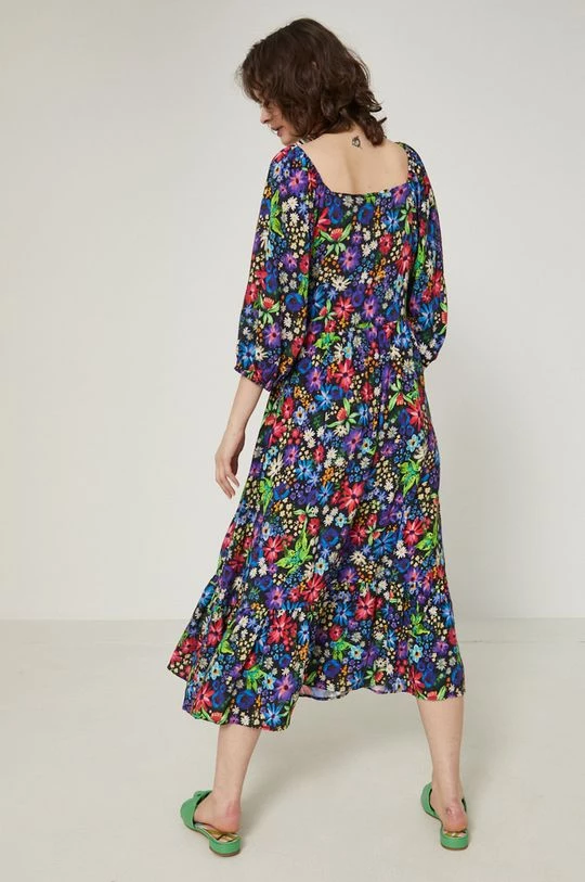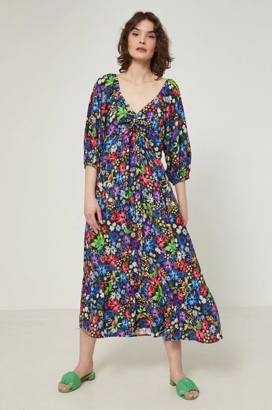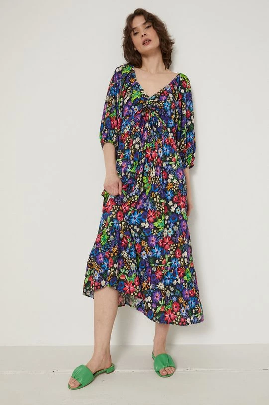 Φόρεμα από τη συλλογή Medicine. Ανοιχτό μοντέλο από ύφασμα με σχέδια.