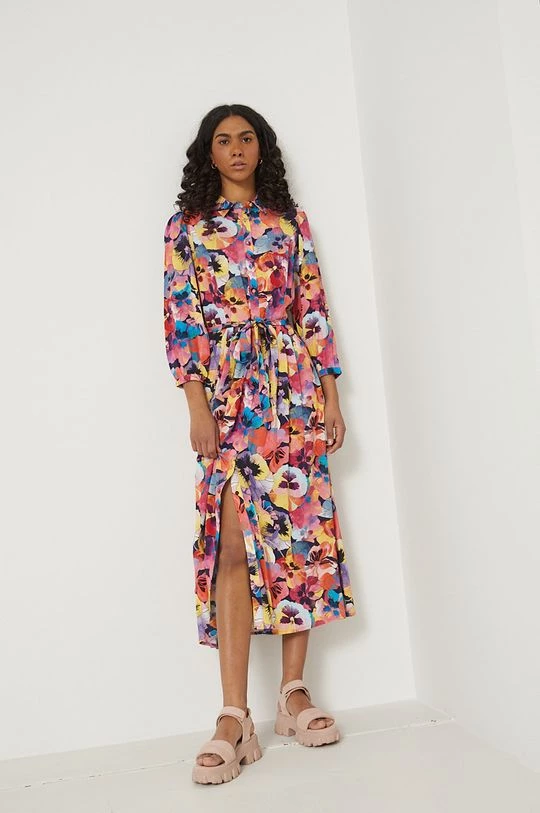 Φόρεμα από τη συλλογή Medicine. Ανοιχτό μοντέλο από ύφασμα με σχέδια.