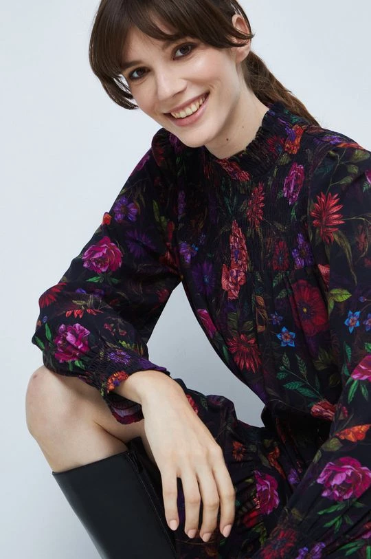 Φόρεμα από τη συλλογή Medicine. Ανοιχτό μοντέλο από ύφασμα με σχέδια.