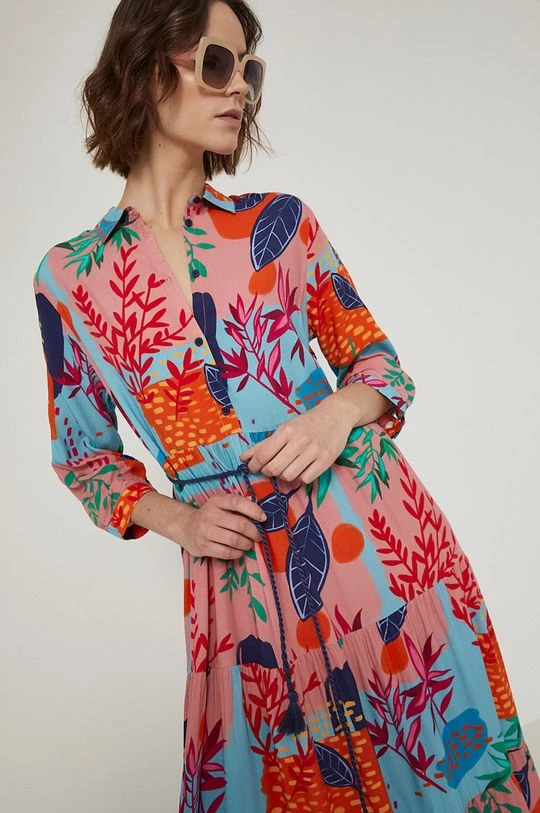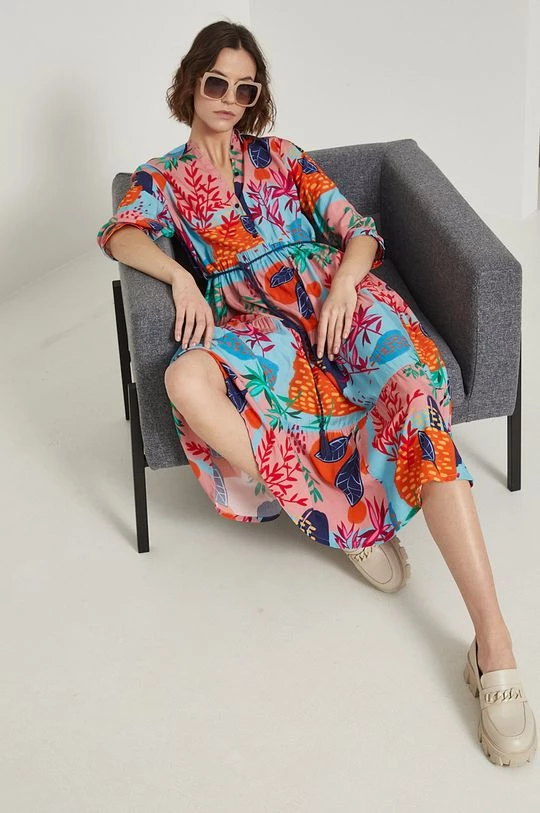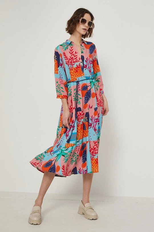 Φόρεμα από τη συλλογή Medicine. Ανοιχτό μοντέλο από ύφασμα με σχέδια.