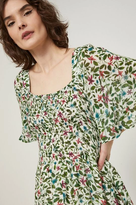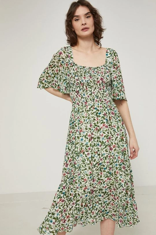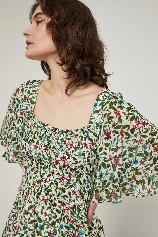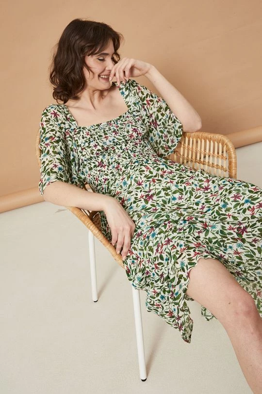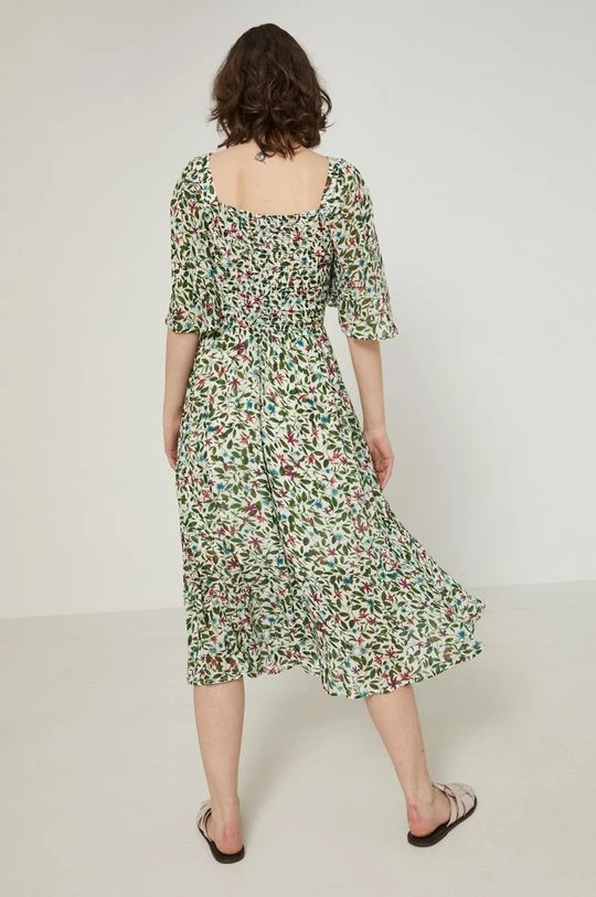 Φόρεμα από τη συλλογή Medicine. Ανοιχτό μοντέλο από ύφασμα με σχέδια.