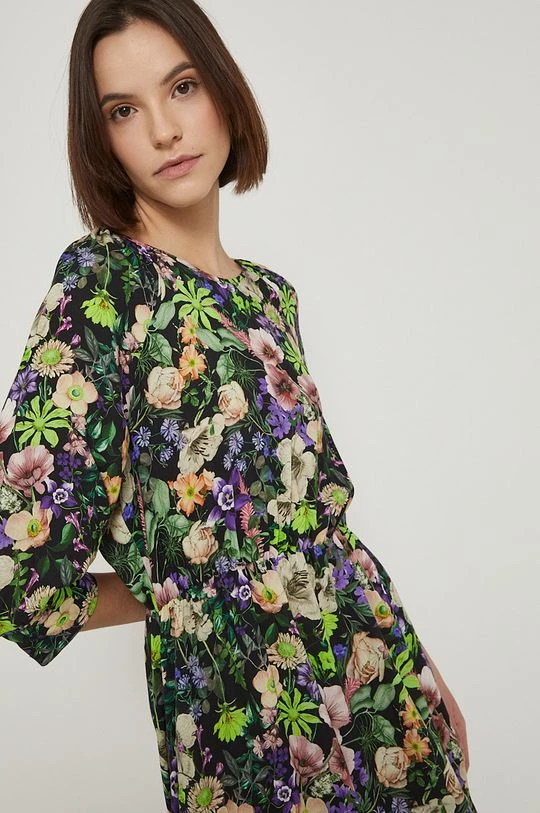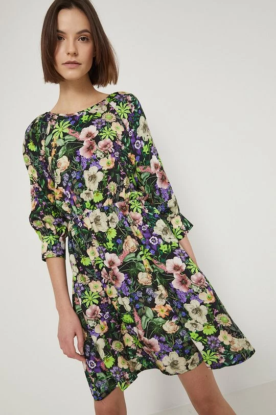 Φόρεμα από τη συλλογή Medicine. Ανοιχτό μοντέλο από ύφασμα με σχέδια.