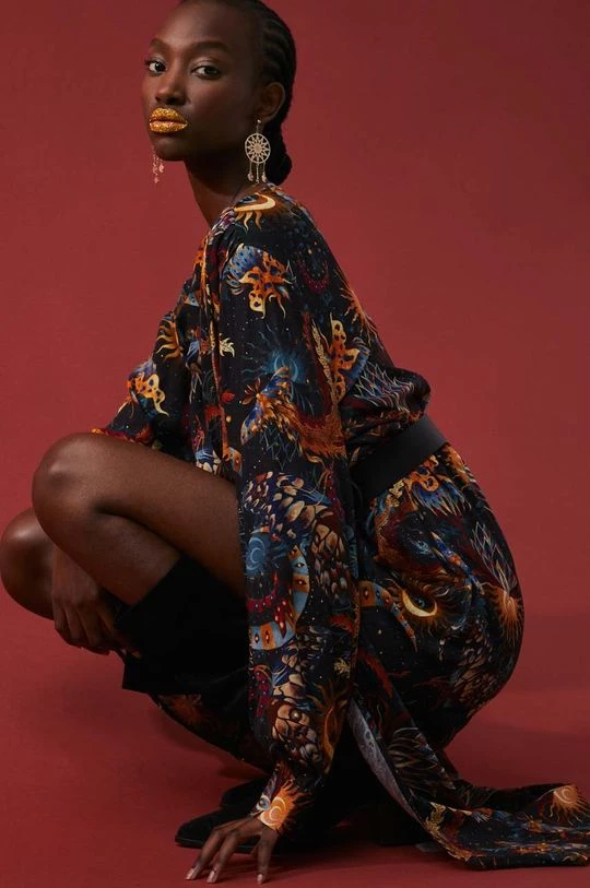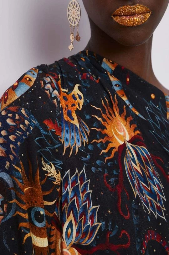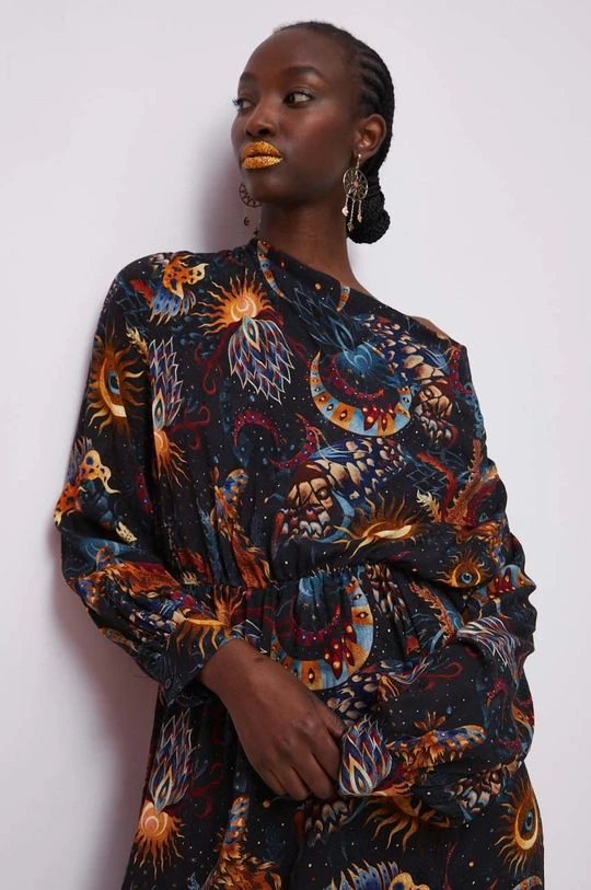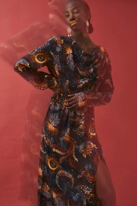 Φόρεμα από τη συλλογή Medicine. Με μέση μοντέλο από ύφασμα με σχέδια.