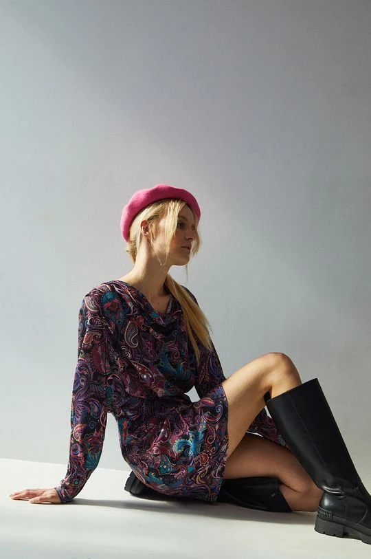 Φόρεμα από τη συλλογή Medicine. Ίσιο μοντέλο από ύφασμα με σχέδια.