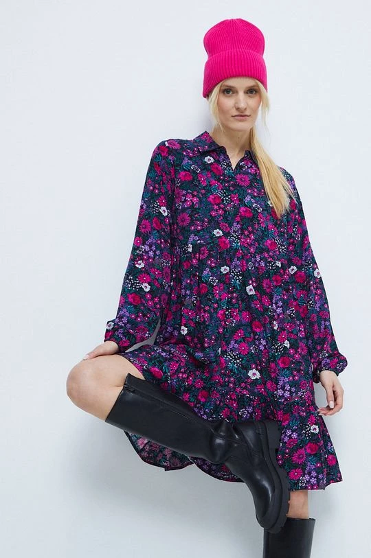 Φόρεμα από τη συλλογή Medicine. Ανοιχτό μοντέλο από ύφασμα με σχέδια.