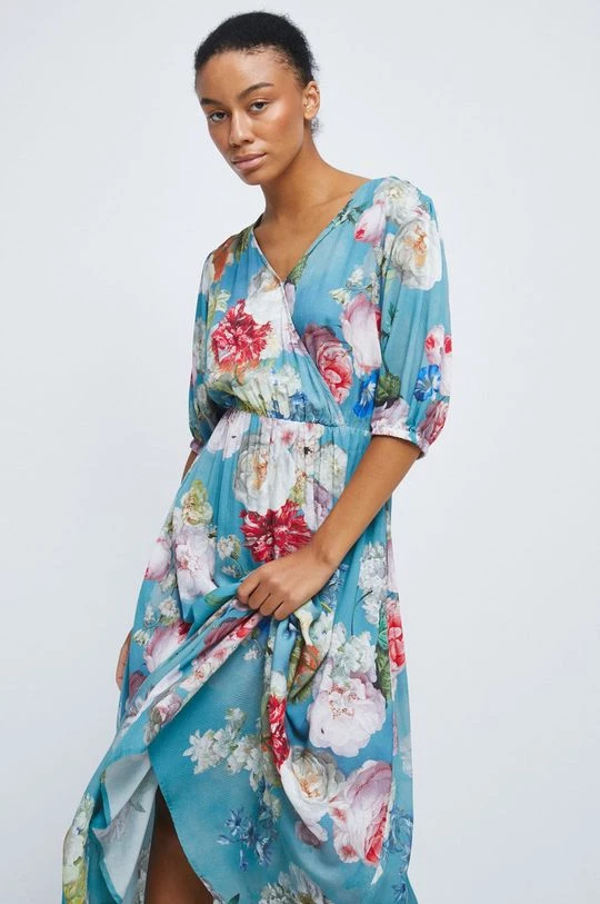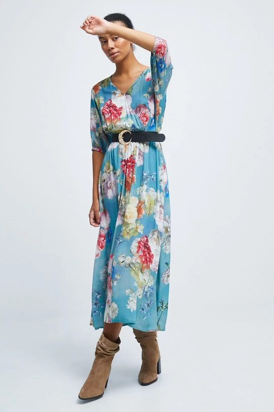 Ελαφρύ φόρεμα από τη συλλογή Medicine. Ανοιχτό μοντέλο από ύφασμα με σχέδια. Ελαφρύ ύφασμα, σχεδιασμένο για πιο ζεστές εποχές.