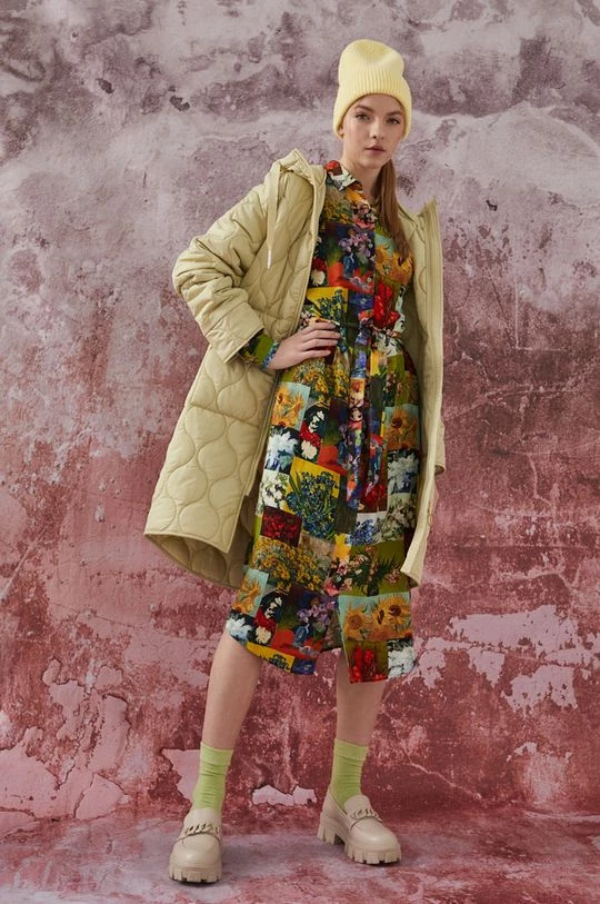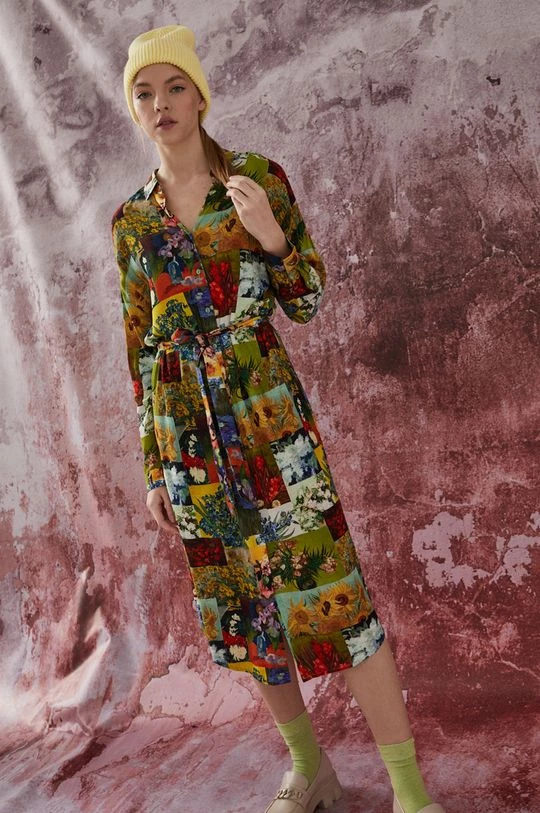 Φόρεμα από τη συλλογή Medicine. Ίσιο μοντέλο από ύφασμα με σχέδια.