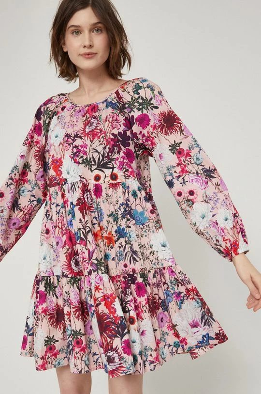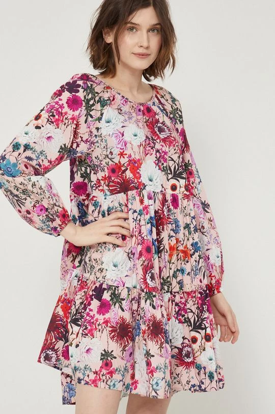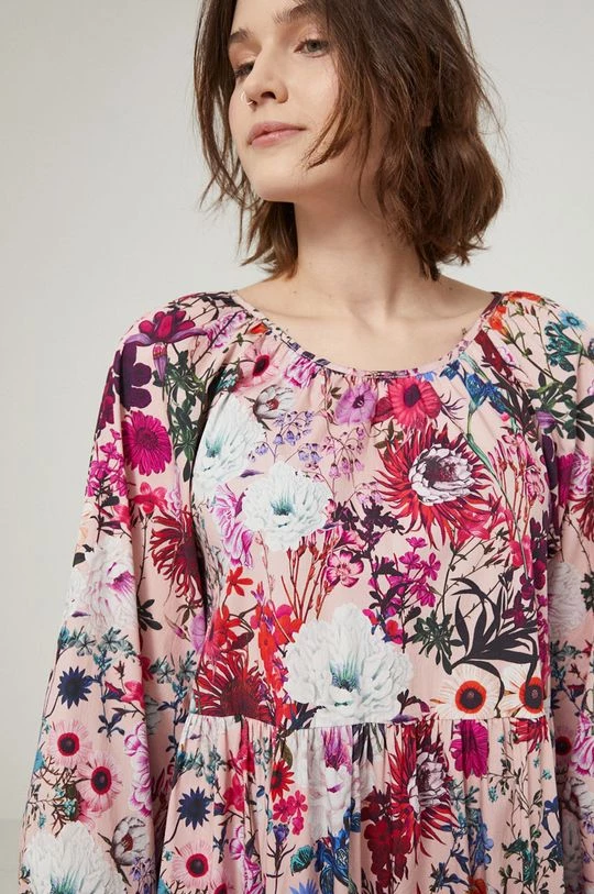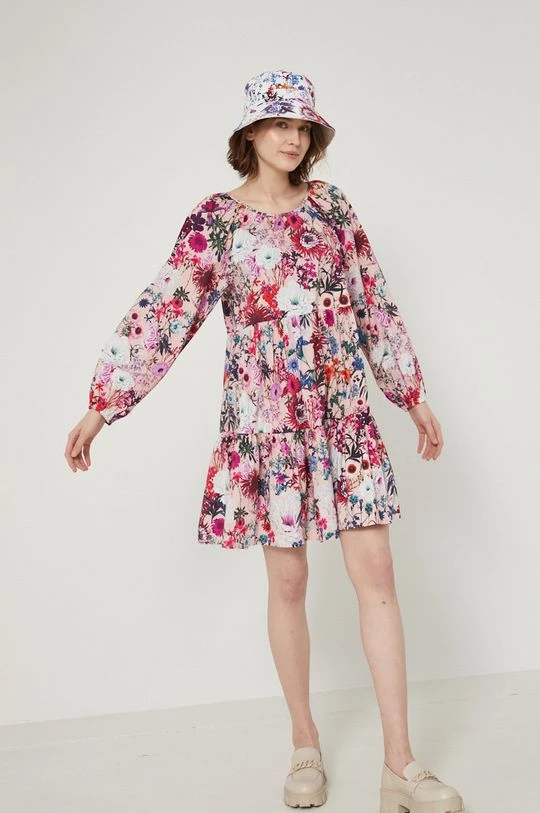Φόρεμα από τη συλλογή Medicine. Ανοιχτό μοντέλο από από ύφασμα με σχέδια.