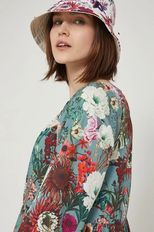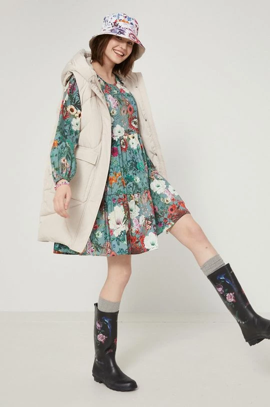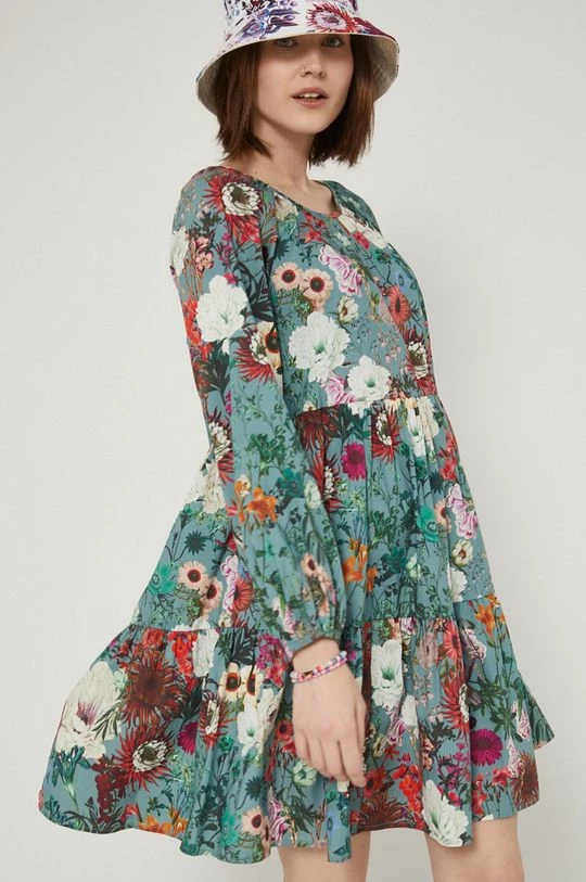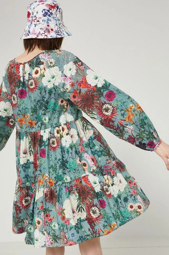Φόρεμα από τη συλλογή Medicine. Ανοιχτό μοντέλο από από ύφασμα με σχέδια.