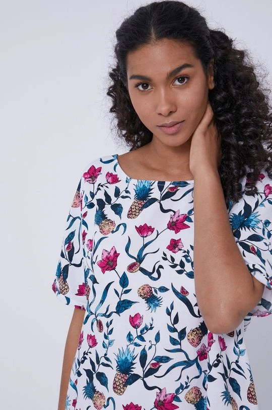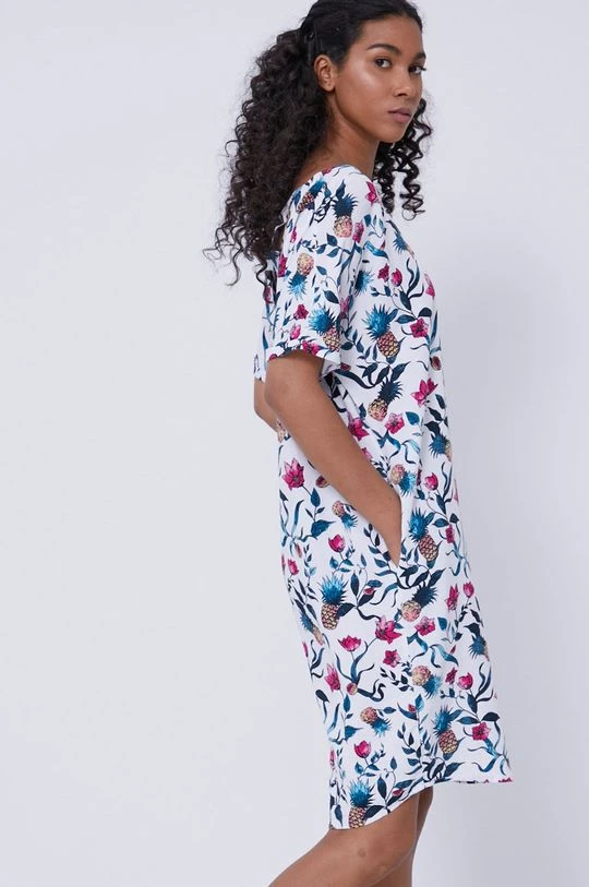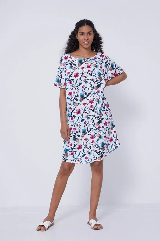 Φόρεμα από τη συλλογή Medicine. Ίσιο μοντέλο από ύφασμα με σχέδια.