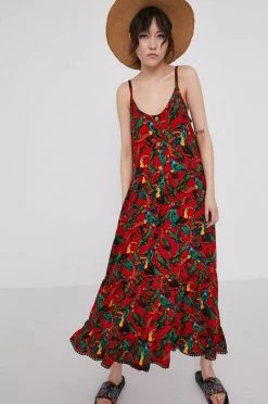 Φόρεμα από τη συλλογή Medicine. Ανοιχτό μοντέλο από ύφασμα με σχέδια.