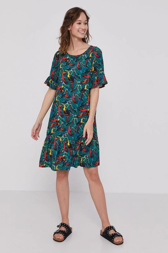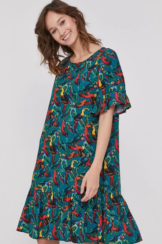 Ελαφρύ φόρεμα από τη συλλογή Medicine. Χαλαρό μοντέλο από ύφασμα με σχέδια.