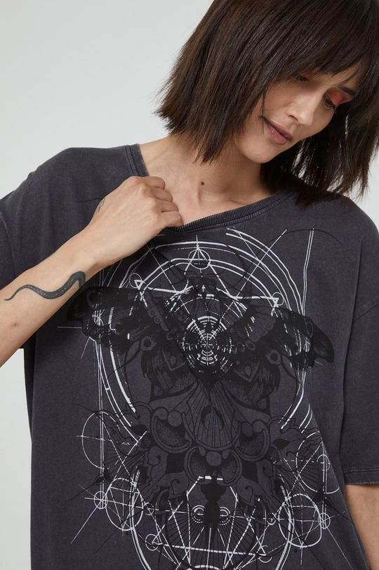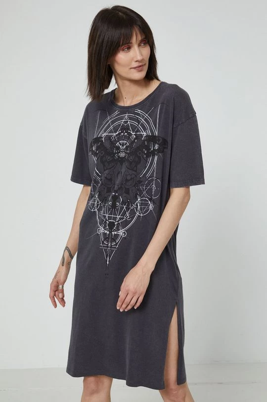 Φόρεμα από τη συλλογή Medicine. Χαλαρό μοντέλο από πλεκτό με εκτύπωση.