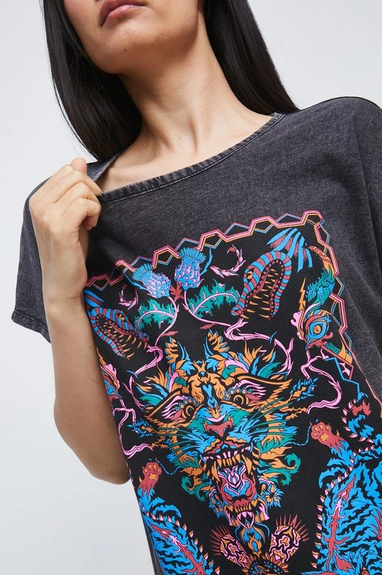 Ελαφρύ φόρεμα από τη συλλογή Medicine. Χαλαρό μοντέλο από πλεκτό με εκτύπωση.