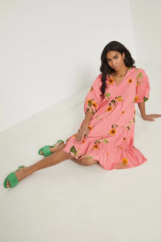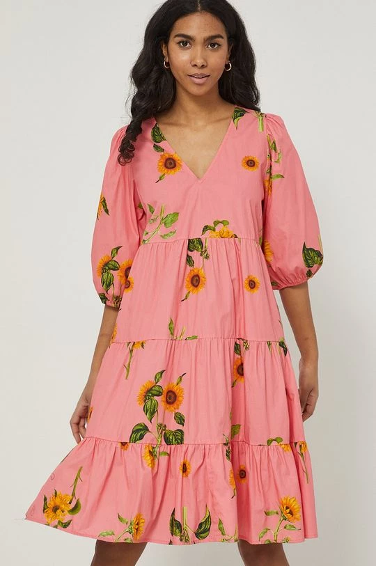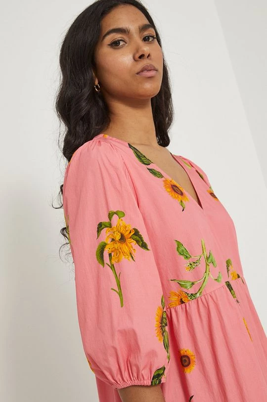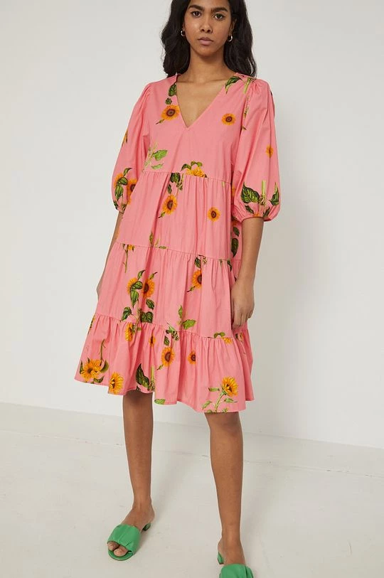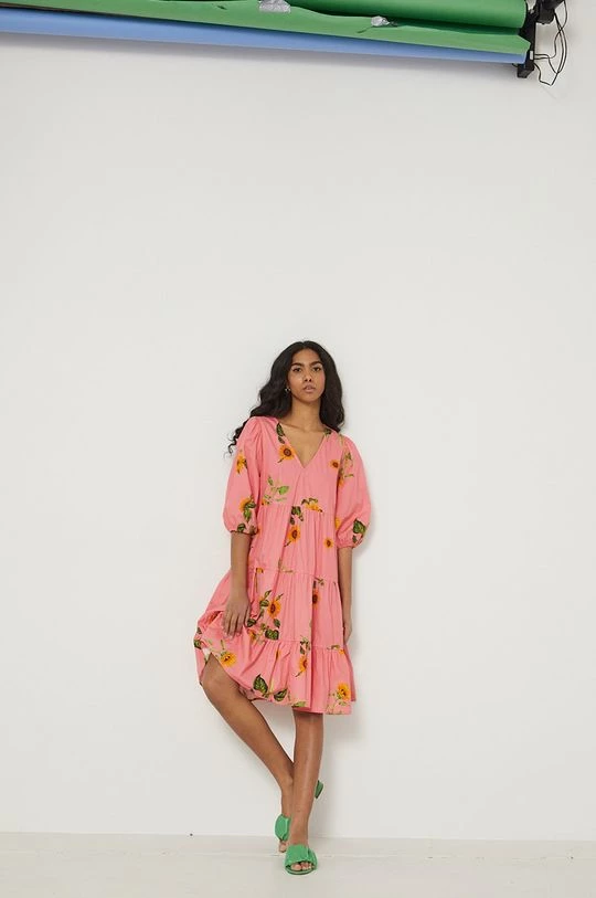 Φόρεμα από τη συλλογή Medicine. Ανοιχτό μοντέλο από ύφασμα με σχέδια.