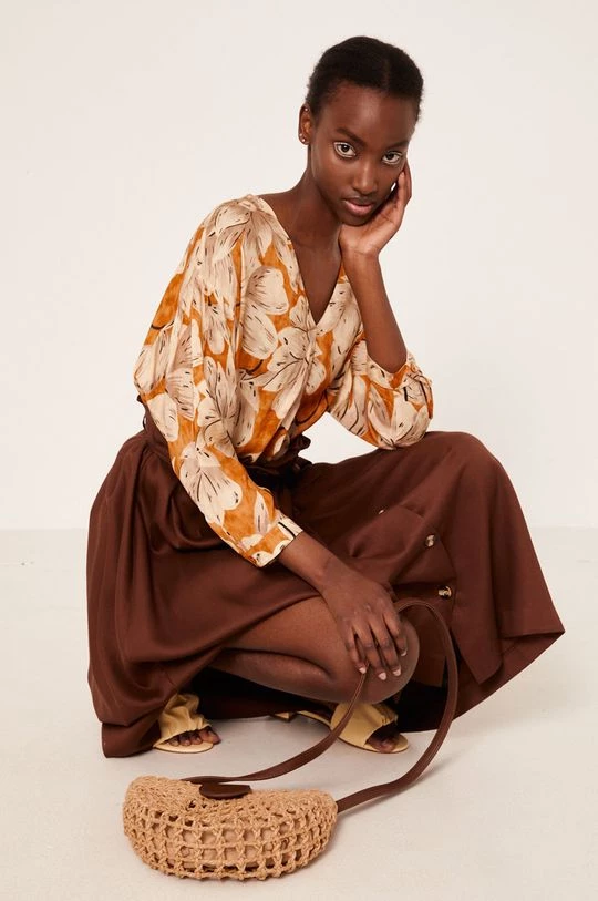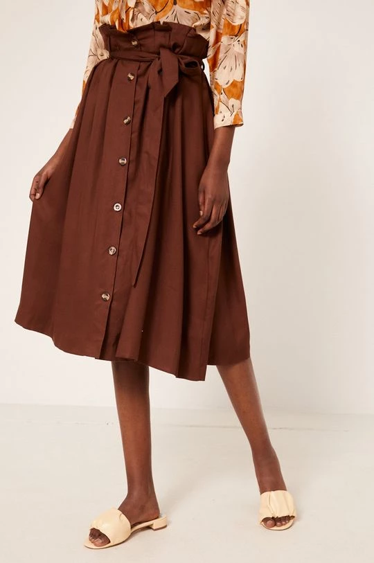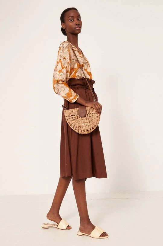 Φούστα από τη συλλογή Medicine. Μοντέλο με που απλώνεται προς τα έξω κόψιμο, από λείο ύφασμα.