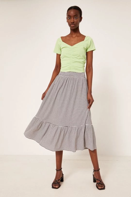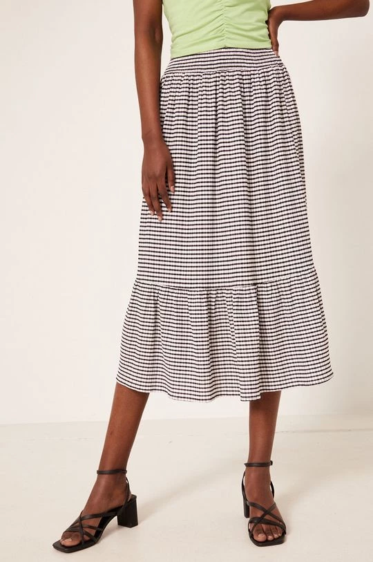 Φούστα από τη συλλογή Medicine. Μοντέλο με που απλώνεται προς τα έξω κόψιμο, από ύφασμα με σχέδια.