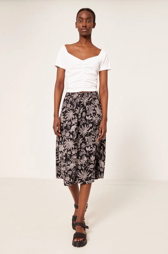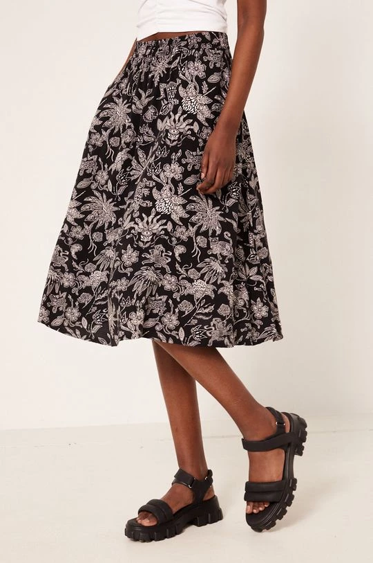 Φούστα από τη συλλογή Medicine. Μοντέλο με που απλώνεται προς τα έξω κόψιμο, από ύφασμα με σχέδια.