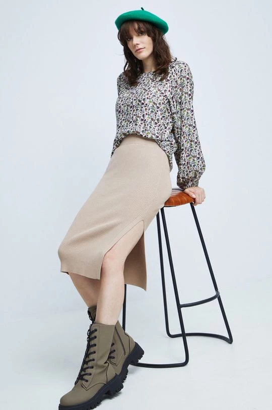 Φούστα από τη συλλογή Medicine. Model o ευθεία τμήμα, από ραβδωτό πλεκτό.