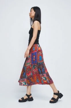 Φούστα από τη συλλογή Medicine. Μοντέλο με που απλώνεται προς τα έξω κόψιμο, από ύφασμα με σχέδια.