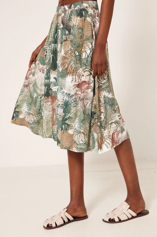 Φούστα από τη συλλογή Medicine. Μοντέλο με που απλώνεται προς τα έξω κόψιμο, από ύφασμα με σχέδια.