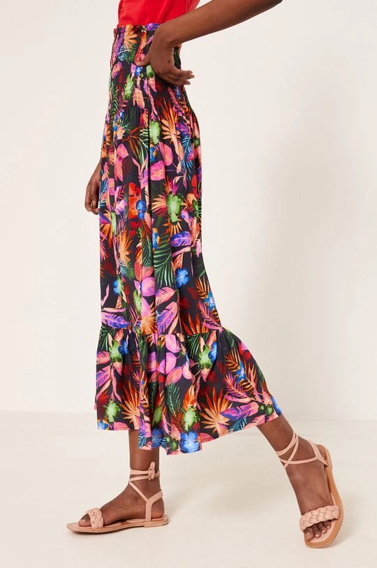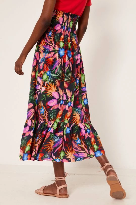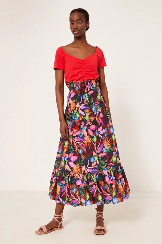 Φούστα από τη συλλογή Medicine. Μοντέλο με που απλώνεται προς τα έξω κόψιμο, από ύφασμα με σχέδια.