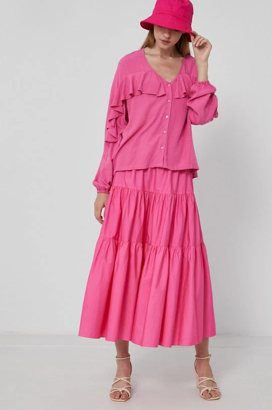 Φούστα από τη συλλογή Medicine. Μοντέλο με που απλώνεται προς τα έξω κόψιμο, από λείο ύφασμα.