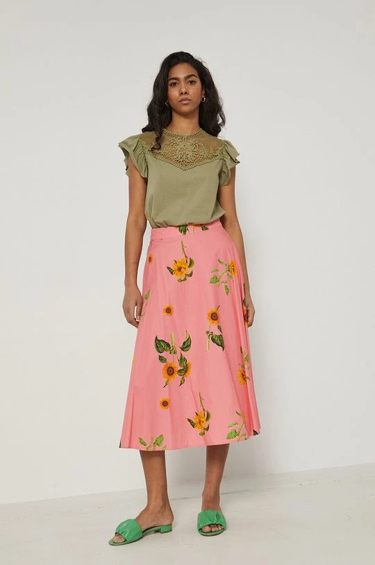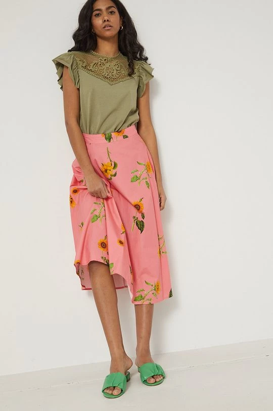 Φούστα από τη συλλογή Medicine. Μοντέλο με που απλώνεται προς τα έξω κόψιμο, από ύφασμα με σχέδια.