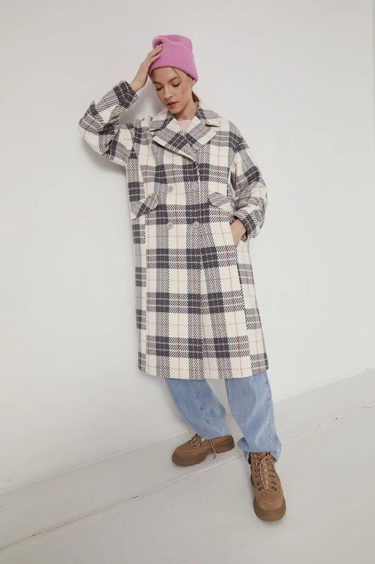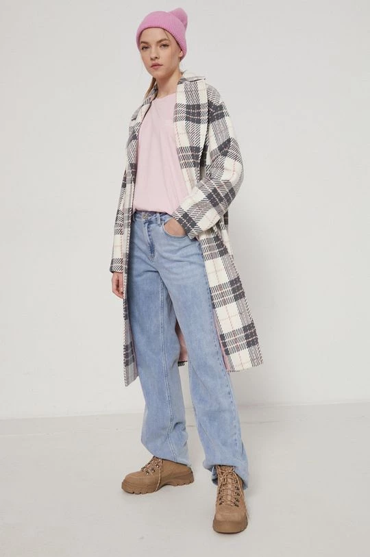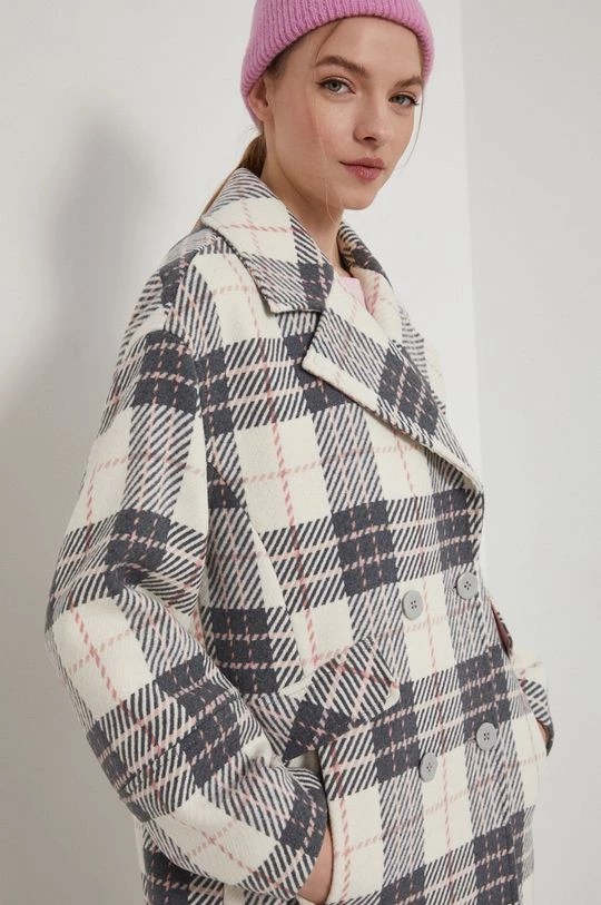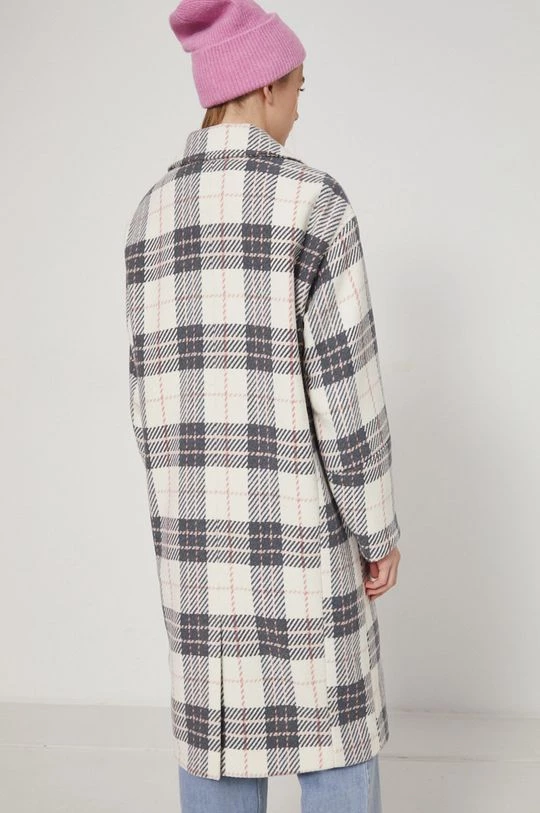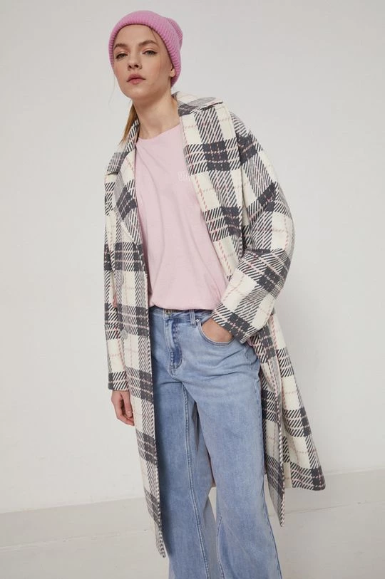 Παλτό από τη συλλογή Medicine. Μεταβατικό μοντέλο από ύφασμα με μοτίβο.