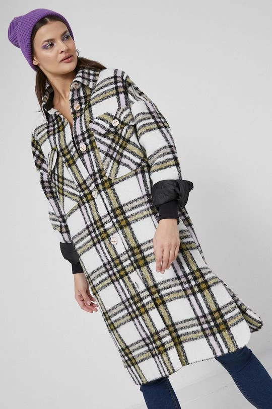 Παλτό από τη συλλογή Medicine. Χωρίς εσωτερική επένδυση μοντέλο από ύφασμα με μοτίβο.